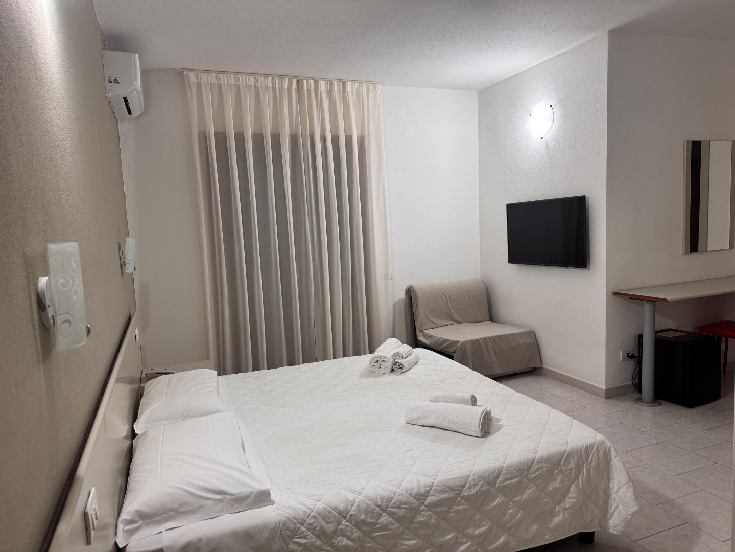 - Leżaki i parasole dostępne (od 3 rzędu bezpłatnie, 1 parasol i 2 leżaki/pokój). Dostępne wszystkie leżaki poza zarezerwowanymi.