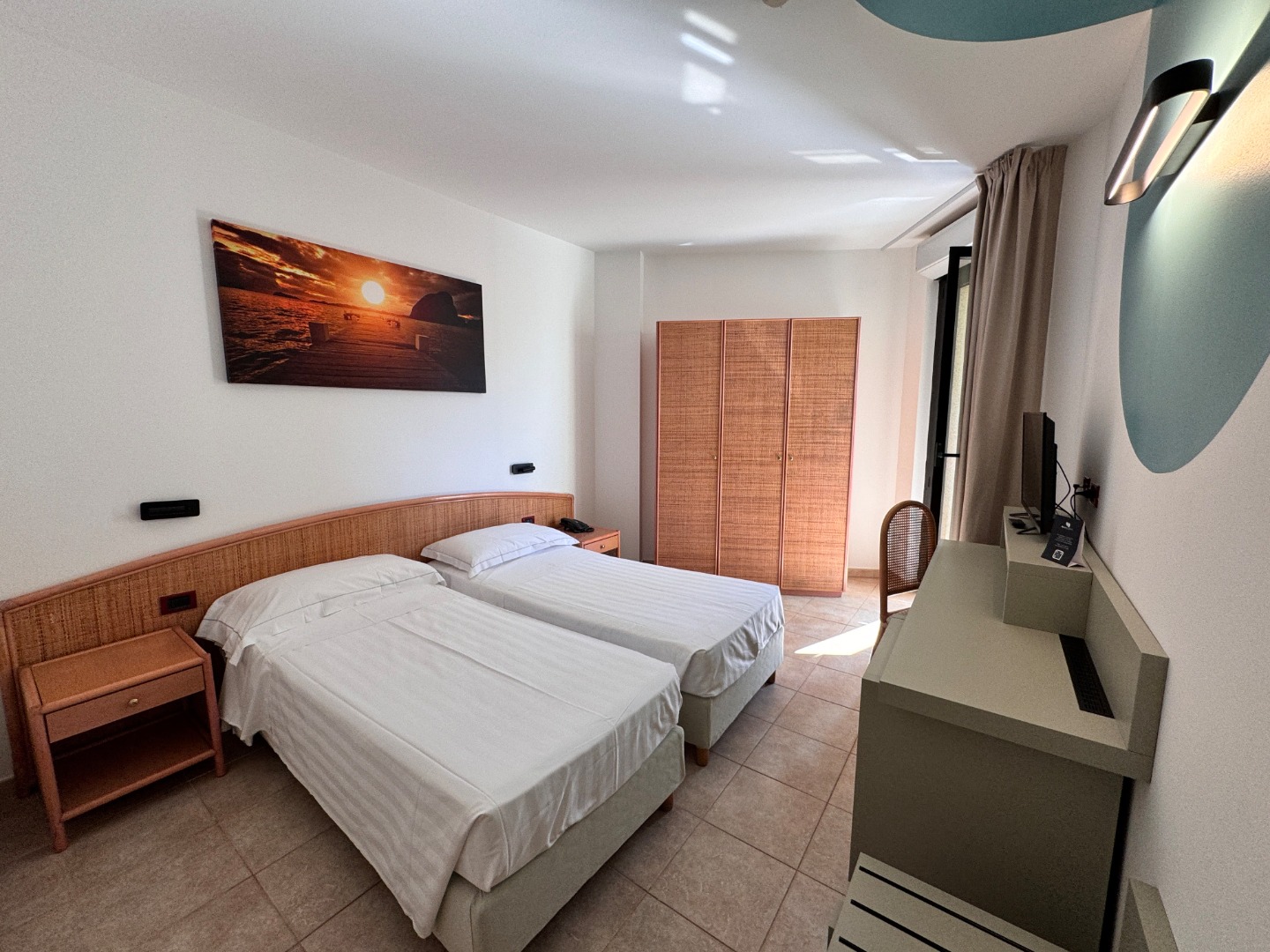 • Pokój Standard: Powierzchnia ok. 18 m², dla maksymalnie 2 osób (możliwa dostawka w formie łóżka piętrowego lub rozkładanej sofy, także dla rodzin 2+2). Wyposażenie obejmuje łazienkę z prysznicem, suszarkę do włosów, klimatyzację centralną, TV satelitarną, telefon, sejf (bezpłatny), minibar (płatny, uzupełniany na przyjazd na życzenie). Dostępne są pokoje z balkonem lub z widokiem na morze za dodatkową opłatą. Na zapytanie możliwość wstawienia łóżeczka dziecięcego do 2 lat (za opłatą).