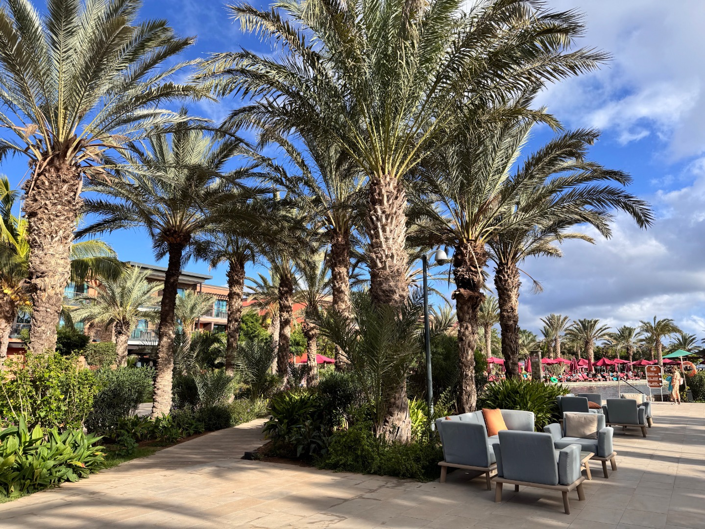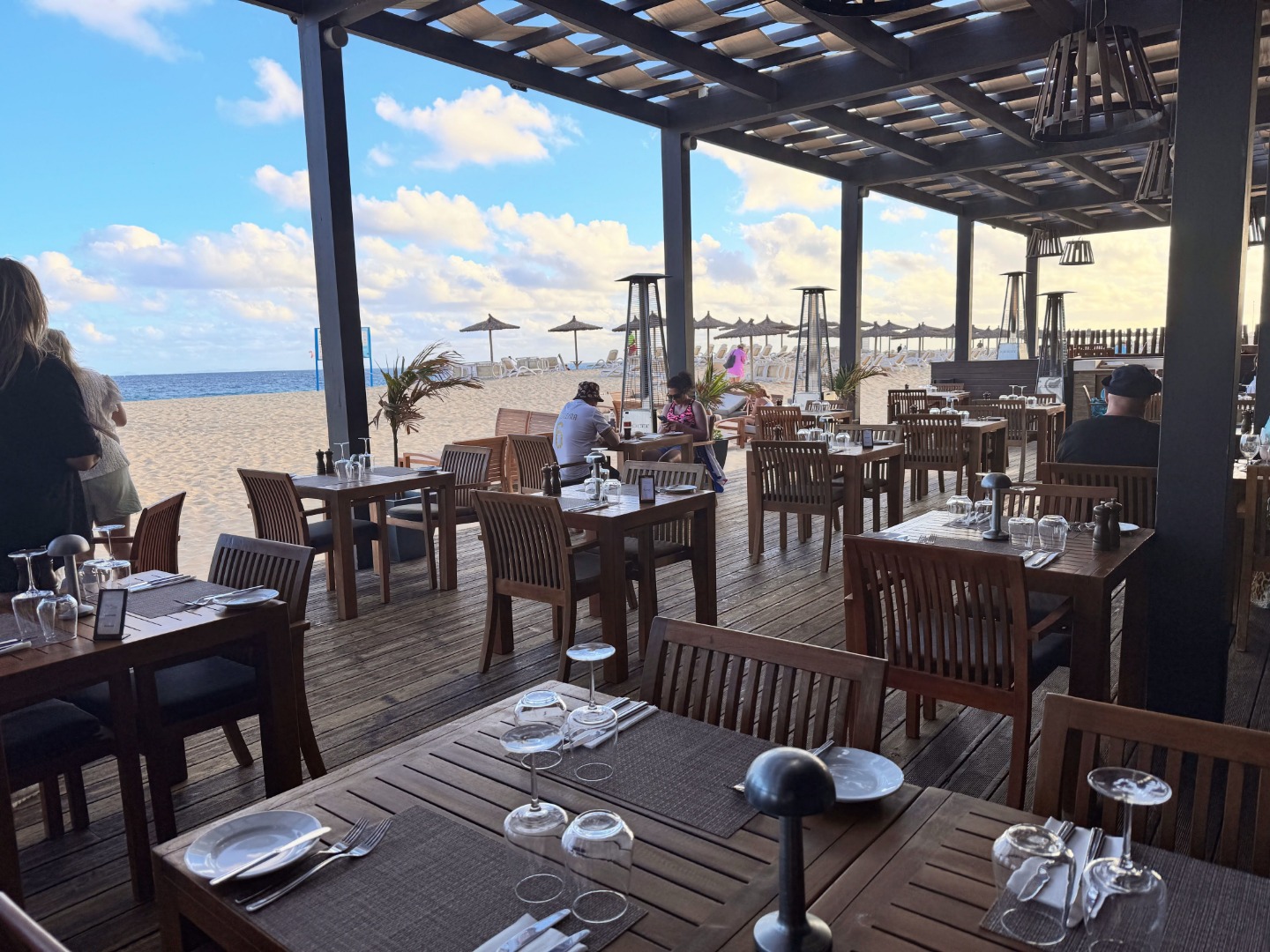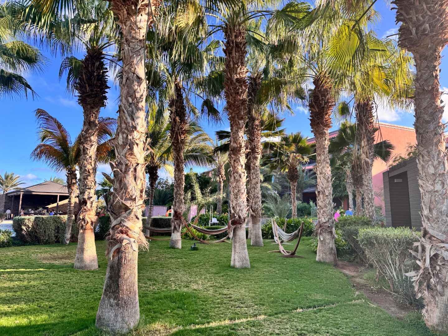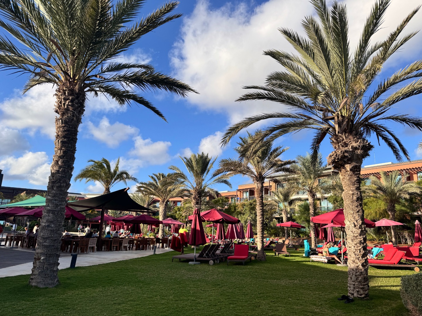 Jeden z lepszych hoteli na tym kierunku. Mamy piękny, duży ogród oraz strefę basenową. Od wejścia robi wrażenie bardzo przestronnego (lobby, strefy wspólne), pokoje są duże i komfortowo wyposażone, na zdjęciach kolejno standardowy, a następnie king size i king size sea view. Hotel ma całkowicie płaski teren oraz udogodnienia i pokoje dla niepełnosprawnych, na plaży również jest kładka. Nie ma za to zbyt wiele do zaoferowania dla maluchów, jest tylko mini klub i malutki brodzik. 3x w tygodniu prowadzone są wieczory kabowerdeńskie oraz raz w tygodniu jest dyskoteka. Na plaży jest wydzielona część hotelowa z bezpłatnymi leżakami oraz bardzo dobra restauracja Bounty Beach (byłem na lunchu), dla gości hotelu lunch jest w cenie 25 euro, ale osoba z zewnątrz zapłaci niewiele więcej za dania z karty (makaron z owocami morza, aperol i deser 34 euro). Przy hotelu zaczyna się promenada spacerowa do centrum Santa Maria ok. 1 km.