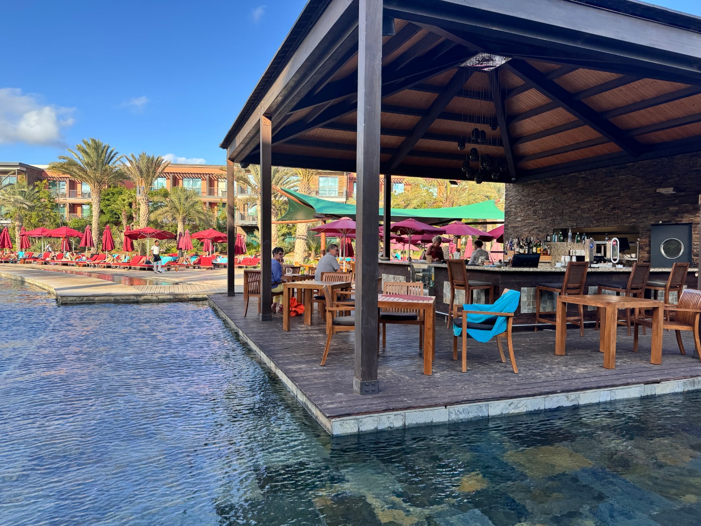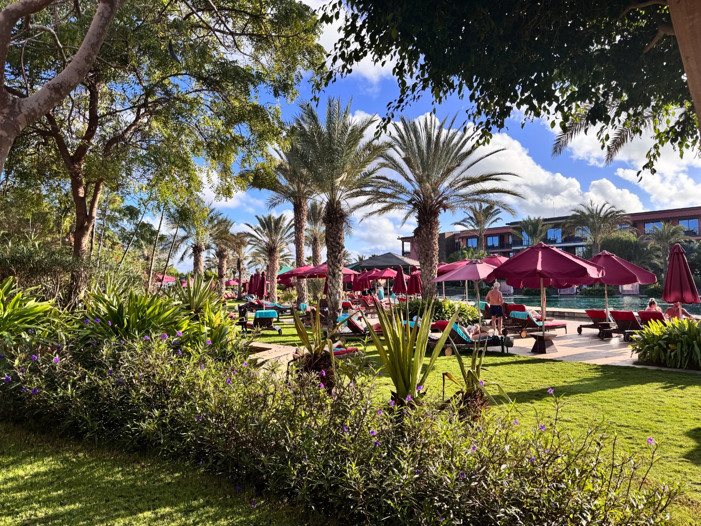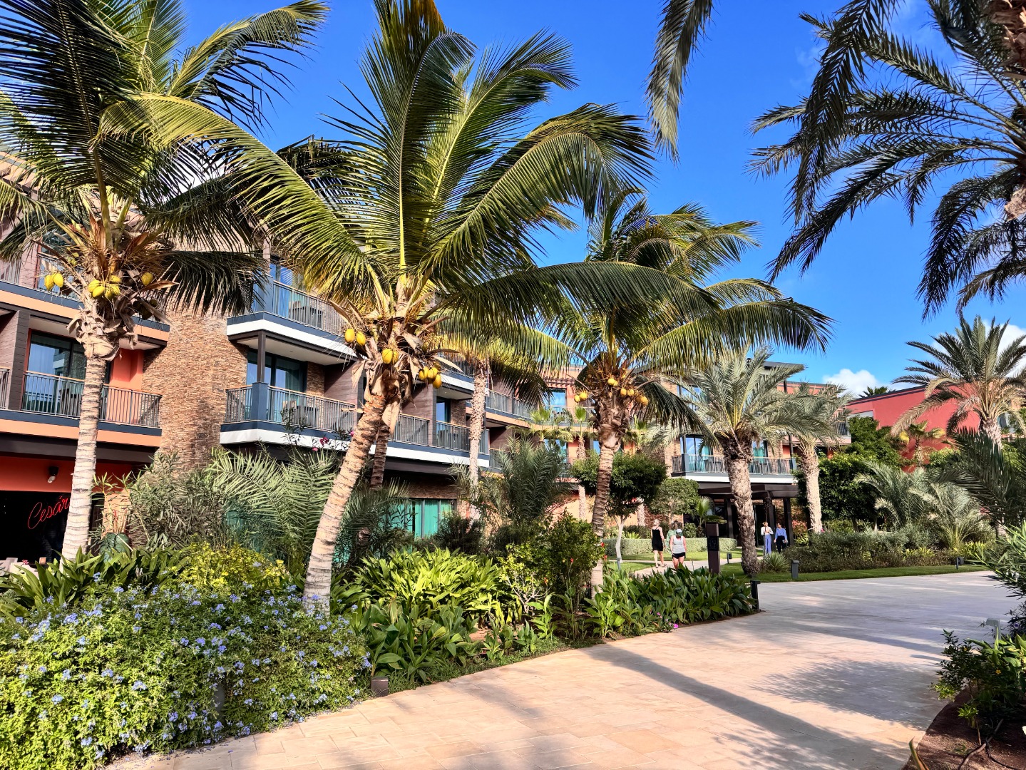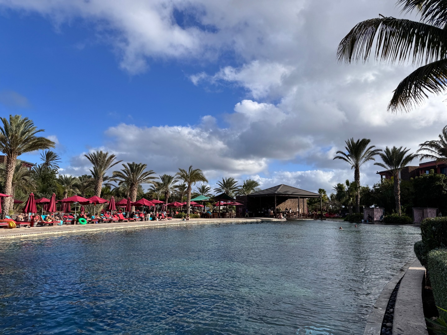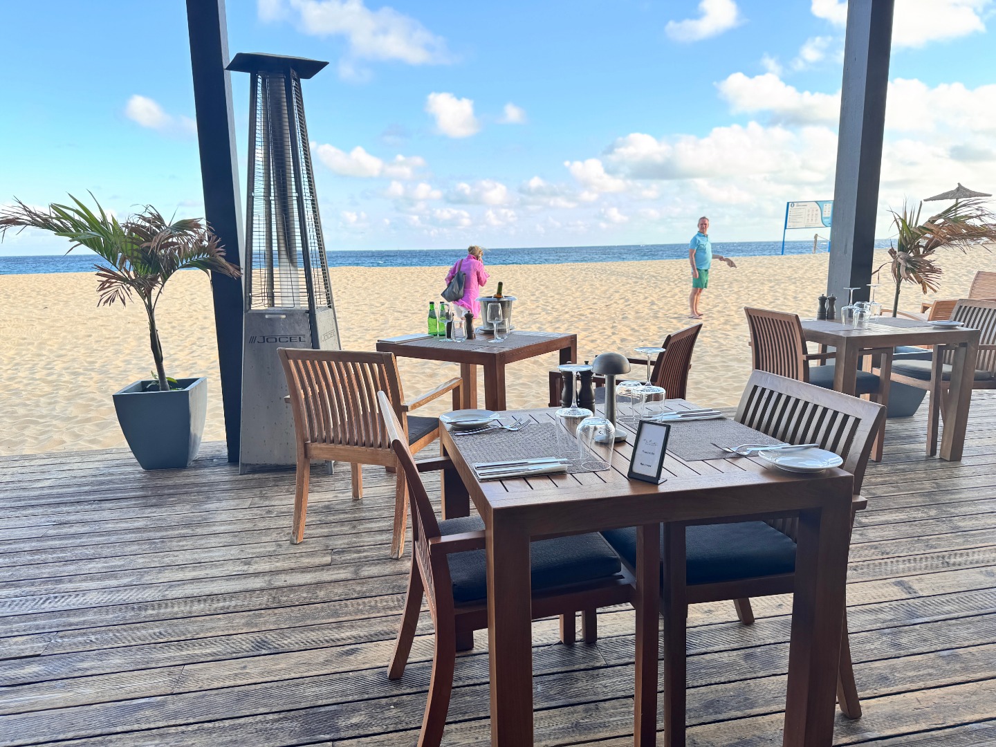 Jeden z lepszych hoteli na tym kierunku. Mamy piękny, duży ogród oraz strefę basenową. Od wejścia robi wrażenie bardzo przestronnego (lobby, strefy wspólne), pokoje są duże i komfortowo wyposażone, na zdjęciach kolejno standardowy, a następnie king size i king size sea view. Hotel ma całkowicie płaski teren oraz udogodnienia i pokoje dla niepełnosprawnych, na plaży również jest kładka. Nie ma za to zbyt wiele do zaoferowania dla maluchów, jest tylko mini klub i malutki brodzik. 3x w tygodniu prowadzone są wieczory kabowerdeńskie oraz raz w tygodniu jest dyskoteka. Na plaży jest wydzielona część hotelowa z bezpłatnymi leżakami oraz bardzo dobra restauracja Bounty Beach (byłem na lunchu), dla gości hotelu lunch jest w cenie 25 euro, ale osoba z zewnątrz zapłaci niewiele więcej za dania z karty (makaron z owocami morza, aperol i deser 34 euro). Przy hotelu zaczyna się promenada spacerowa do centrum Santa Maria ok. 1 km.