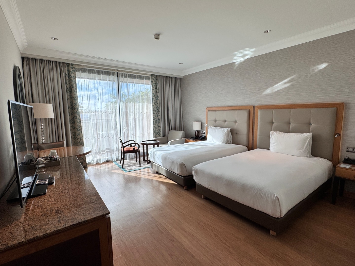 Hotel oferuje zakwaterowanie w 240 pokojach różnego typu. Wszystkie klimatyzowane, przestronne i nowocześnie umeblowane, wyposażone w HD-TV, sejf, minibar (płatny),  łazienkę (wanna/prysznic, suszarka do włosów, kosmetyki kąpielowe). Bezpłatna butelka wody mineralnej na przyjazd. Łóżeczko dla dziecka do lat 2 na potwierdzenie.