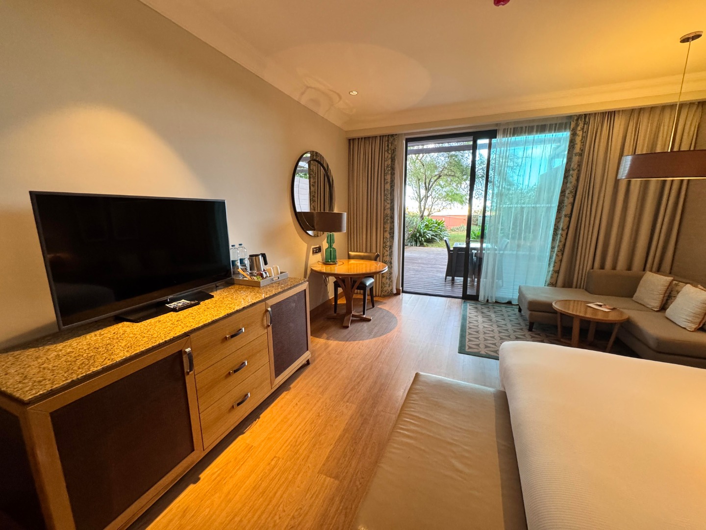 Superior King z widokiem na basen (pow. ok.37m2) - max 3 os. Łóżko typu king size, balkon, zestaw do parzenia kawy, deska do prasowania i żelazko. Dostawka w formie kanapy.