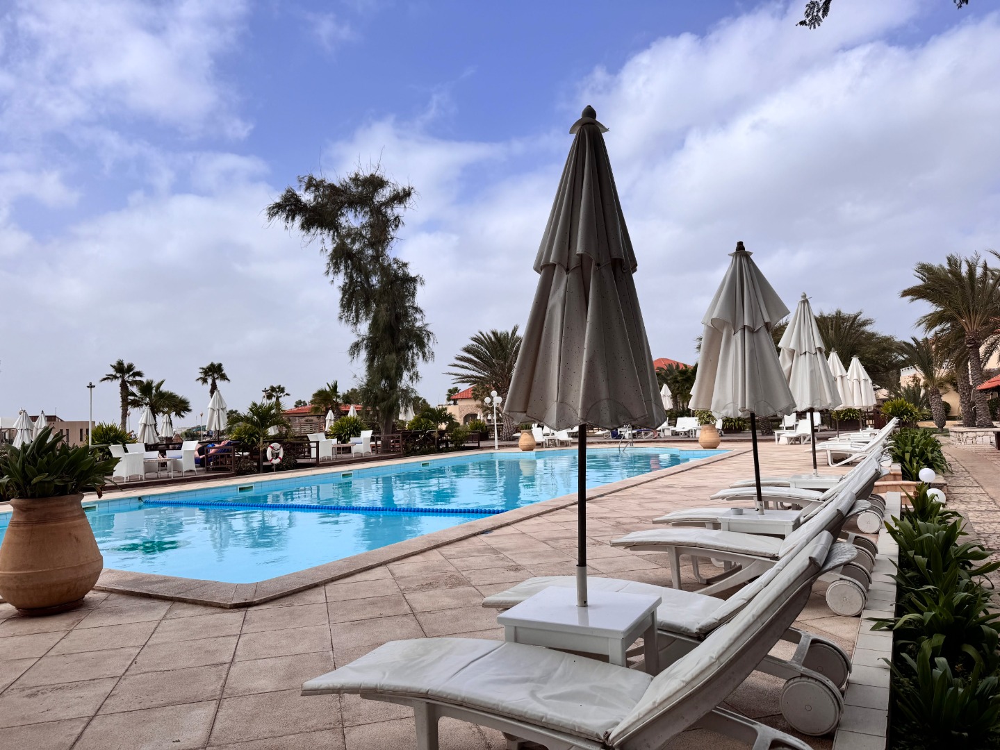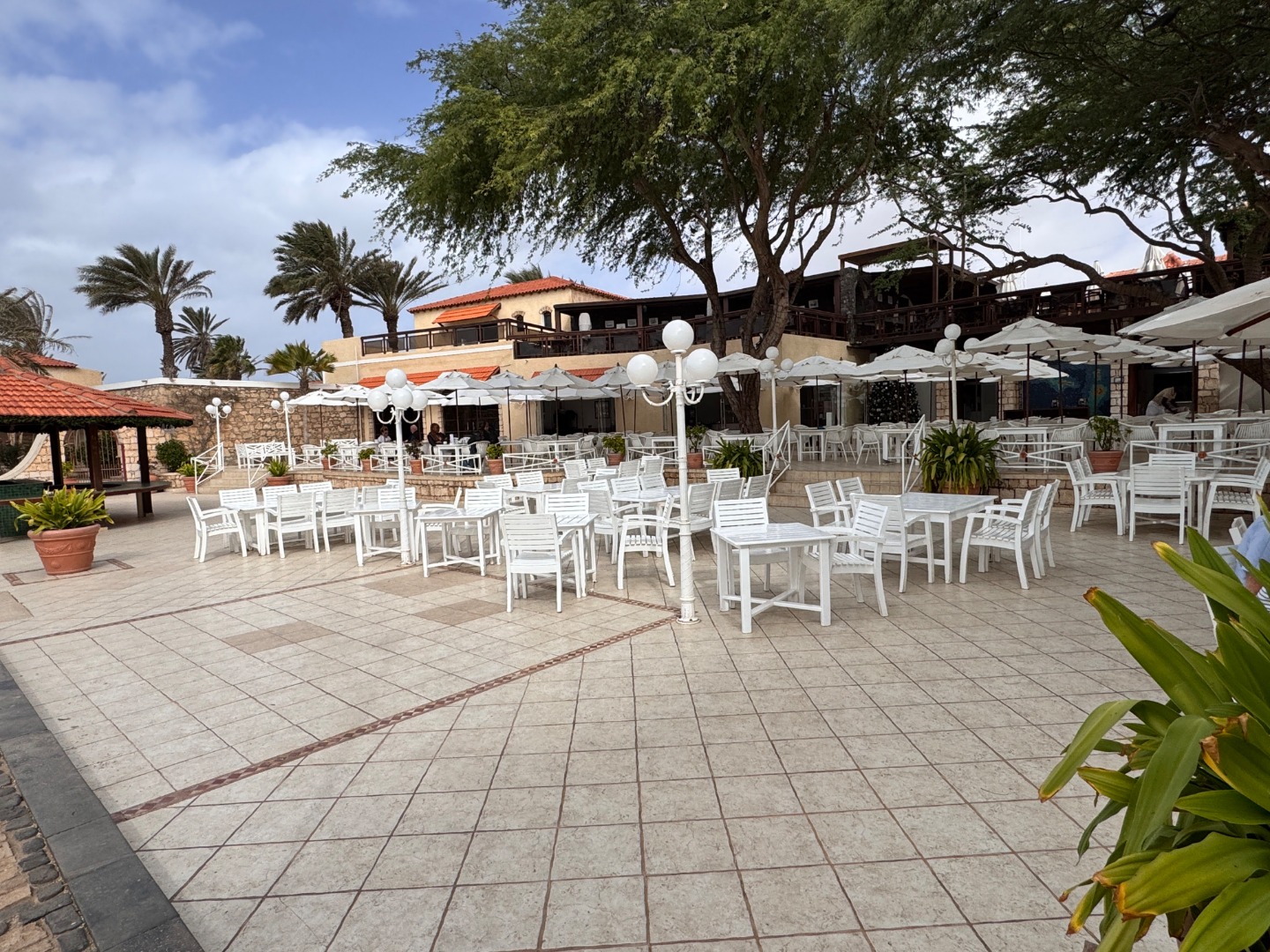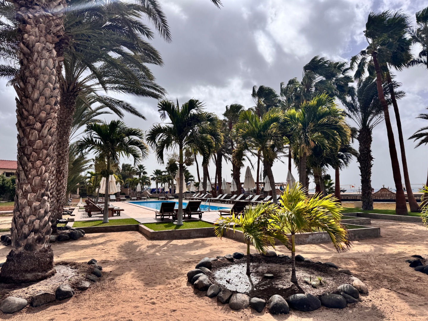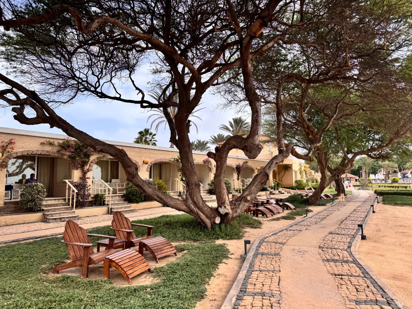 Pierwszy hotel komercyjny jaki powstał na WZP i bardzo się tym szczycą. Hotel na dużym terenie, kilka basenów, sporo zieleni, rozbudowany program animacji i tu znowu bardzo się szczycą tym, że wszystko jest w cenie tj. kije bilardowe, mini golf, tenis ziemny i stołowy itp. Hotel urządzony w kolonialnym stylu, bardzo ładne wnętrza, piękne i wygodne pokoje, eleganckie, całość bardzo zadbana. W hotelu jest część executive tylko dla dorosłych z osobnym basenem. Plaża hotelowa z leżakami płatnymi 20 euro/dzień, przy plaży działa Morabeza beach club gdzie oprócz bardzo dobrej restauracji jest taka oszklona przestrzeń z leżakami, fajna opcja biorąc pod uwagę jak tam wieje. W hotelu są organizowane wieczory kabowerdeńskie, jak Klienci kupują sobie taki fakultet, to właśnie tu jest realizowany. Byliśmy, jedzenie dobre, trochę muzyki na żywo, trochę lokalnych tańców, można się wybrać ale nie liczyć na fajerwerki, raczej na dobrą kolację z pokazem lokalnego folkloru. Hotel przy promenadzie, zaczyna się przy nim takie ścisłe centrum.