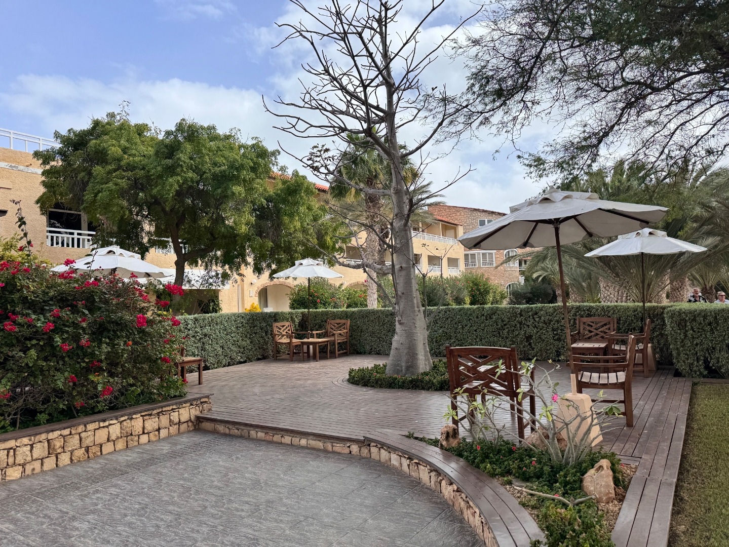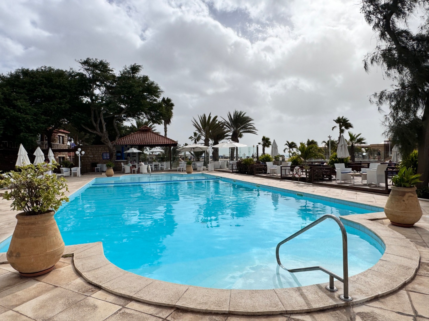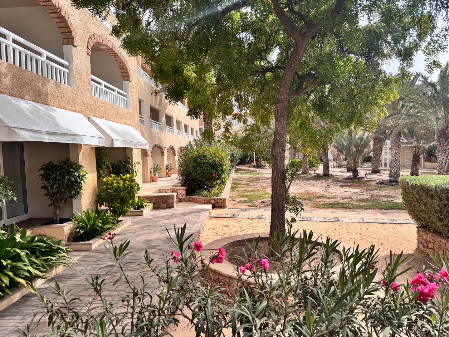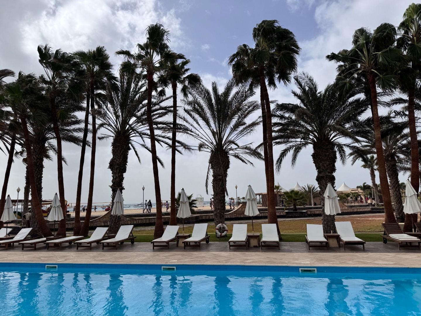 Pierwszy hotel komercyjny jaki powstał na WZP i bardzo się tym szczycą. Hotel na dużym terenie, kilka basenów, sporo zieleni, rozbudowany program animacji i tu znowu bardzo się szczycą tym, że wszystko jest w cenie tj. kije bilardowe, mini golf, tenis ziemny i stołowy itp. Hotel urządzony w kolonialnym stylu, bardzo ładne wnętrza, piękne i wygodne pokoje, eleganckie, całość bardzo zadbana. W hotelu jest część executive tylko dla dorosłych z osobnym basenem. Plaża hotelowa z leżakami płatnymi 20 euro/dzień, przy plaży działa Morabeza beach club gdzie oprócz bardzo dobrej restauracji jest taka oszklona przestrzeń z leżakami, fajna opcja biorąc pod uwagę jak tam wieje. W hotelu są organizowane wieczory kabowerdeńskie, jak Klienci kupują sobie taki fakultet, to właśnie tu jest realizowany. Byliśmy, jedzenie dobre, trochę muzyki na żywo, trochę lokalnych tańców, można się wybrać ale nie liczyć na fajerwerki, raczej na dobrą kolację z pokazem lokalnego folkloru. Hotel przy promenadzie, zaczyna się przy nim takie ścisłe centrum.