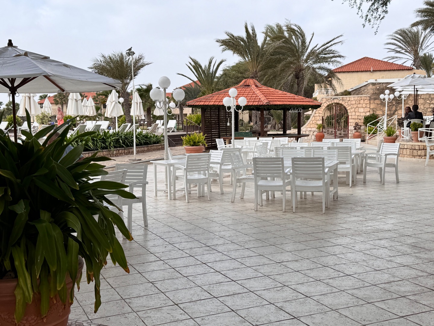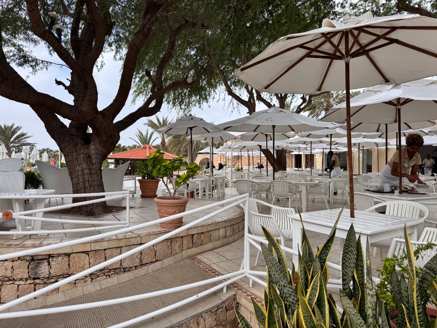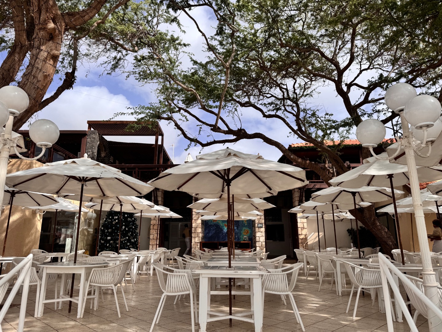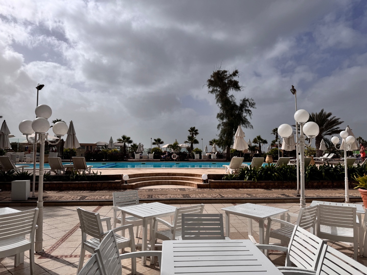 Pierwszy hotel komercyjny jaki powstał na WZP i bardzo się tym szczycą. Hotel na dużym terenie, kilka basenów, sporo zieleni, rozbudowany program animacji i tu znowu bardzo się szczycą tym, że wszystko jest w cenie tj. kije bilardowe, mini golf, tenis ziemny i stołowy itp. Hotel urządzony w kolonialnym stylu, bardzo ładne wnętrza, piękne i wygodne pokoje, eleganckie, całość bardzo zadbana. W hotelu jest część executive tylko dla dorosłych z osobnym basenem. Plaża hotelowa z leżakami płatnymi 20 euro/dzień, przy plaży działa Morabeza beach club gdzie oprócz bardzo dobrej restauracji jest taka oszklona przestrzeń z leżakami, fajna opcja biorąc pod uwagę jak tam wieje. W hotelu są organizowane wieczory kabowerdeńskie, jak Klienci kupują sobie taki fakultet, to właśnie tu jest realizowany. Byliśmy, jedzenie dobre, trochę muzyki na żywo, trochę lokalnych tańców, można się wybrać ale nie liczyć na fajerwerki, raczej na dobrą kolację z pokazem lokalnego folkloru. Hotel przy promenadzie, zaczyna się przy nim takie ścisłe centrum.