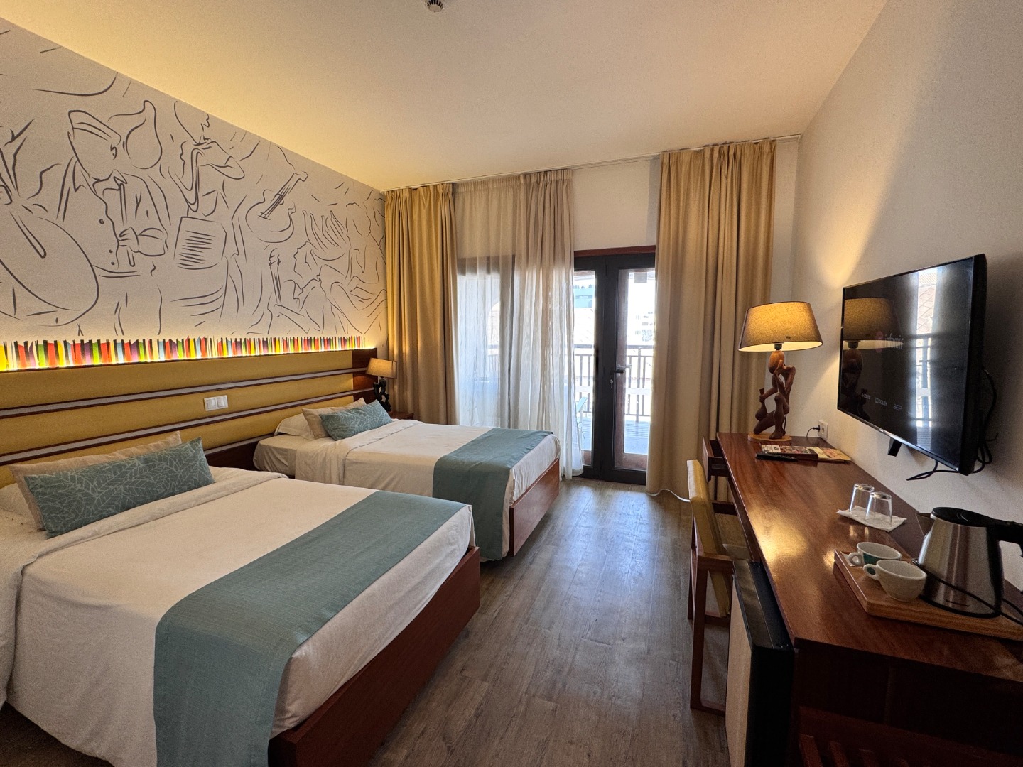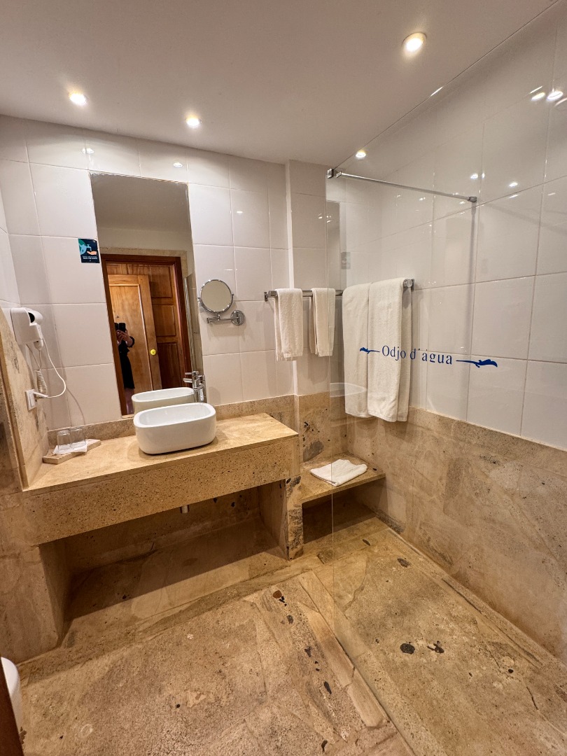 Hotel w całości należący do kabowerdeńczyków, jedyny taki na wyspie. Hotel nieduży, klimatyczny, w kolonialnym stylu, widać w nim dbałość o detale, jest dużo zieleni. W hotelu jest restauracja z kuchnią lokalną, uważana za jedną z najlepszych w Santa Maria, byliśmy na kolacji i jedzenie jest faktycznie bardzo dobre, ale nie jest tanio, wieczorami jest muzyka na żywo. Hotel ma długi odcinek plaży z bezpłatnymi leżakami, 2 baseny nieduże, w tym 1 infnity, 2 beach bary, w tym jeden dostępny również dla gości z zewnątrz. Pokoje są zadbane i ładnie urządzone, na zdjęciach standard i suite sea view. Hotel położony w centrum Santa Maria.